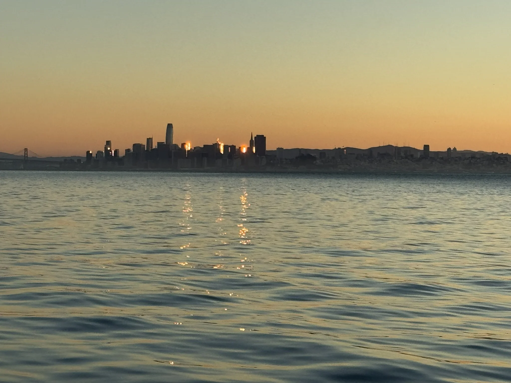 At this point the wind had started up again but now was coming from the usual Southwest direction and I was in the lee wind shadow of Angel island in a pretty wicked current taking me the wrong way. So after taking a bit of time to get my bearing I knew I needed to get aware from the island to get back into some steady breeze. The Southwest wind never quite filled in but I managed to get myself away from the island and the worst of the current and then headed back for the marina. It was getting late in the afternoon and my progress in the light breeze wasn’t great. I was having a good time and enjoying myself so I wasn’t worried. I had plenty of fuel in case I needed to motor back but for now it was a lovely late afternoon on the bay. During this time I even saw a porpoise come up to the boat. No pictures because it was over so quickly.